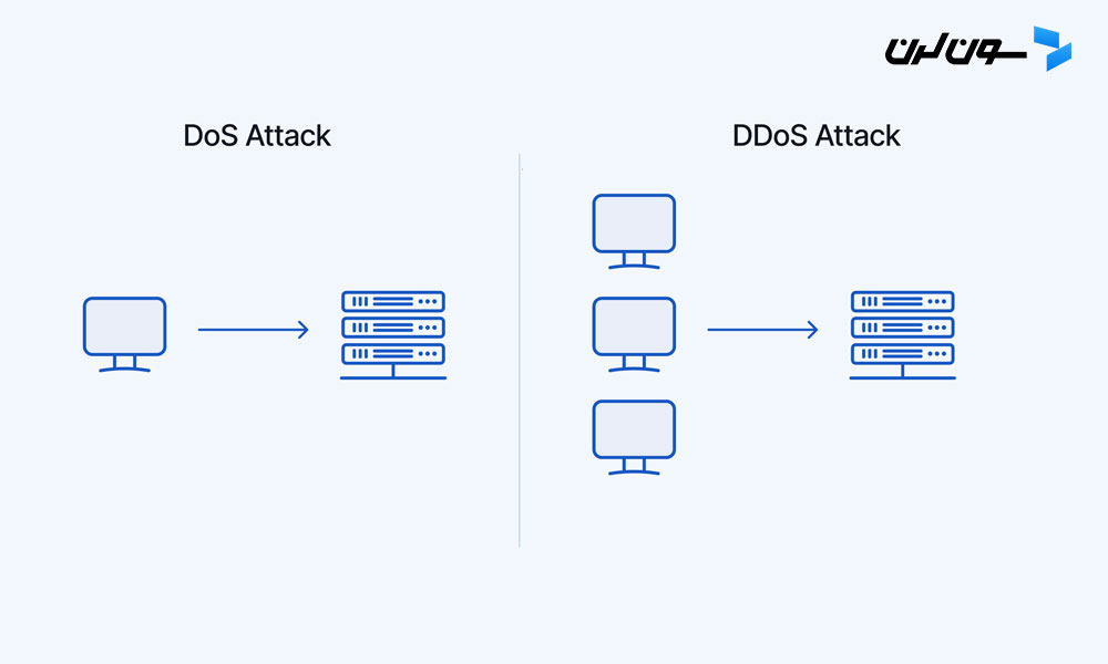 پس DoS یک حمله از یک نفره، ولی DDoS یه حمله از هزاران سیستم به طور همزمانه.
